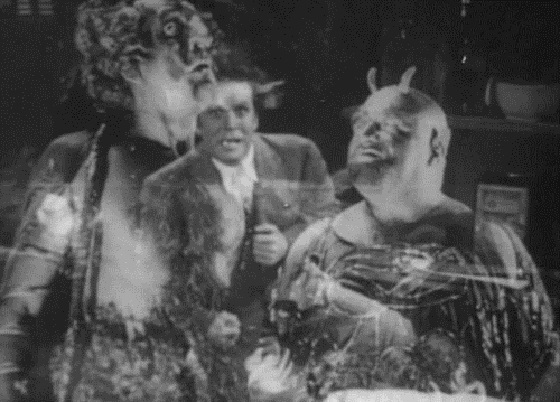 The technical aspects are exploitative as well, but they’re a bit easier to look at. The film was shot by cinematographer William C. Thompson (who would end up becoming one of Ed Wood’s guys, with credits that include Plan 9 from Outer Space and Night of the Ghouls) in a way that is a textbook example of film school scene construction. Every scene is captured in a master shot which basically shows the entire conversation or encounter in one wide take. Inserts are then spliced in, sometimes a little awkwardly, by editor William Austen (The Bat, Panic in Year Zero!) to break up the monotony. When Maxwell’s madness really starts unfolding, Esper and Austen overlay and fade in spooky occult scenes from a couple of older silent foreign films (Häxan: Withcraft Through the Ages and Die Nibelengen: Siegfried for those who are keeping track at home) that illustrate the devil inside that is taking over the leading man’s mind. Even if the film falls short in other areas, the technical elements of Maniac are creative and well done.